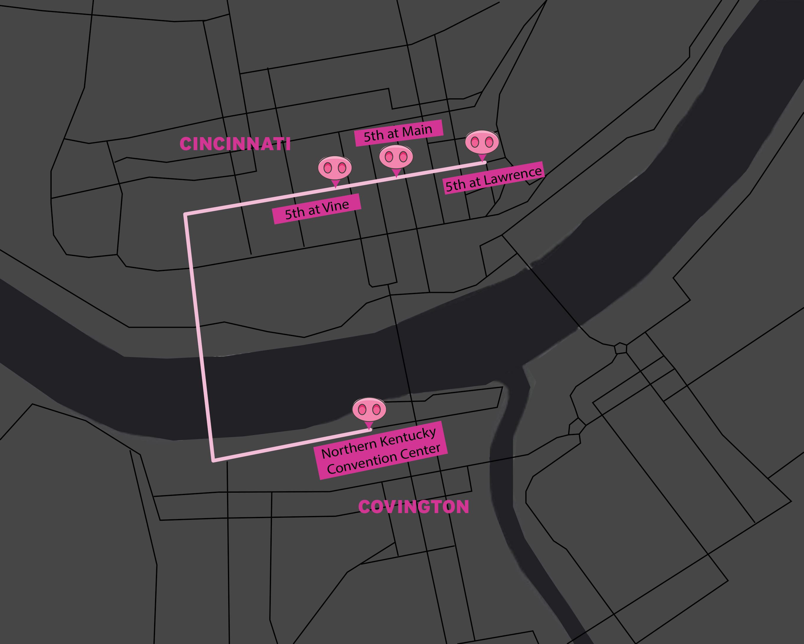 Additionally, participants living or staying in Newport and Bellevue can take the Southbank Shuttle to NKYCC for packet pickup for just $2 per trip. You can view the Southbank Shuttle schedule and stops HERE, service runs every 15 minutes. Your drop off spot to get to the Northern Kentucky Convention Center will be at the Covington Transit Center.